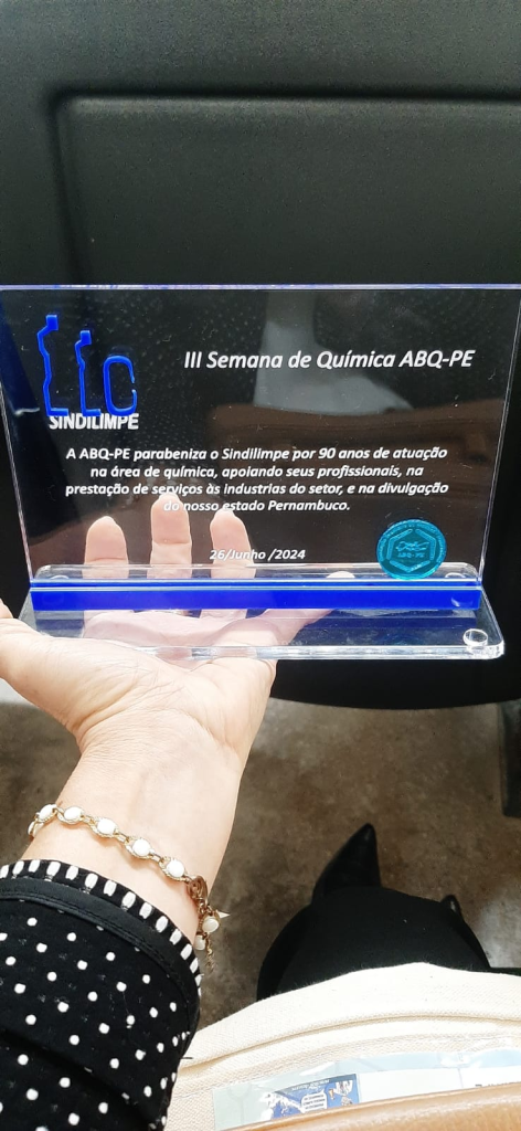 Na noite dia (26), o Sindilimpe foi homenageado pelos seus 90 anos de atuação no evento da Semana do Químico promovido pela ABQ-PE. O Sindilimpe desde de sua existência se dedica e contribui para qualificação e crescimento das indústrias de saneantes de Pernambuco.