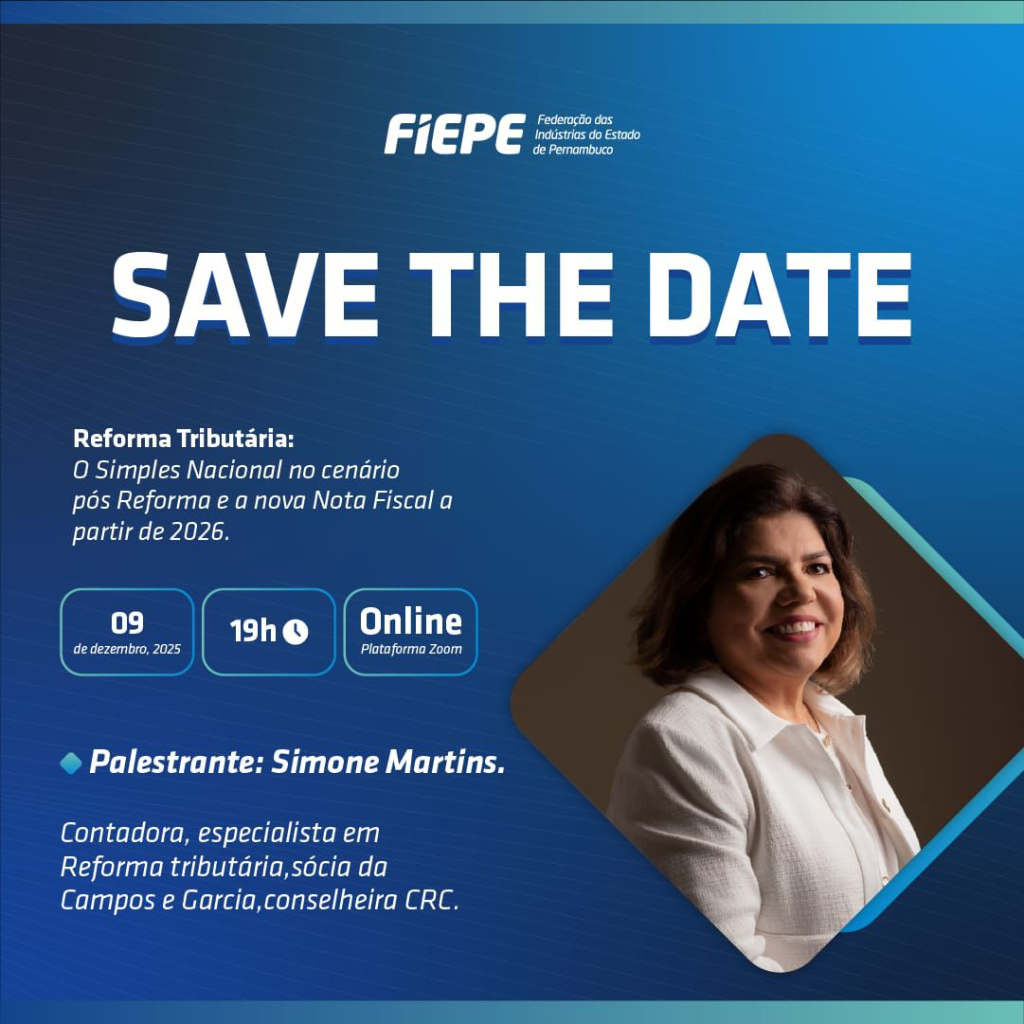 Inscreva-se: https://agenda.fiepe.org.br/webinar-reforma-tributaria-simples-nacional-cenario-pos-reforma-nova-nota-fiscal-662297/